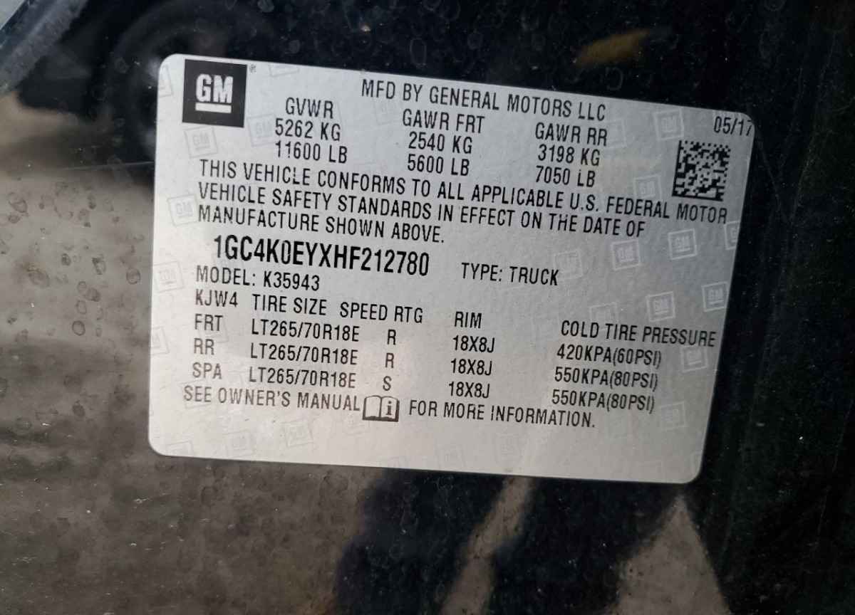 VIN:1GC4K0EYXHF212780