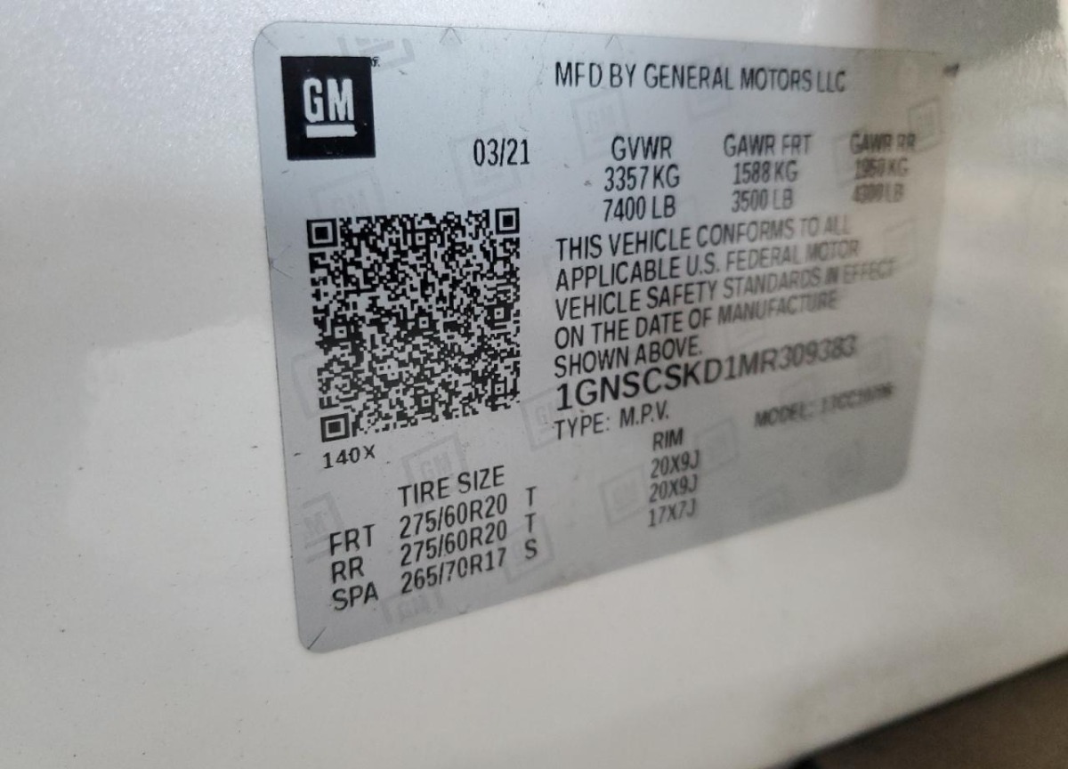VIN:1GNSCSKD1MR309383