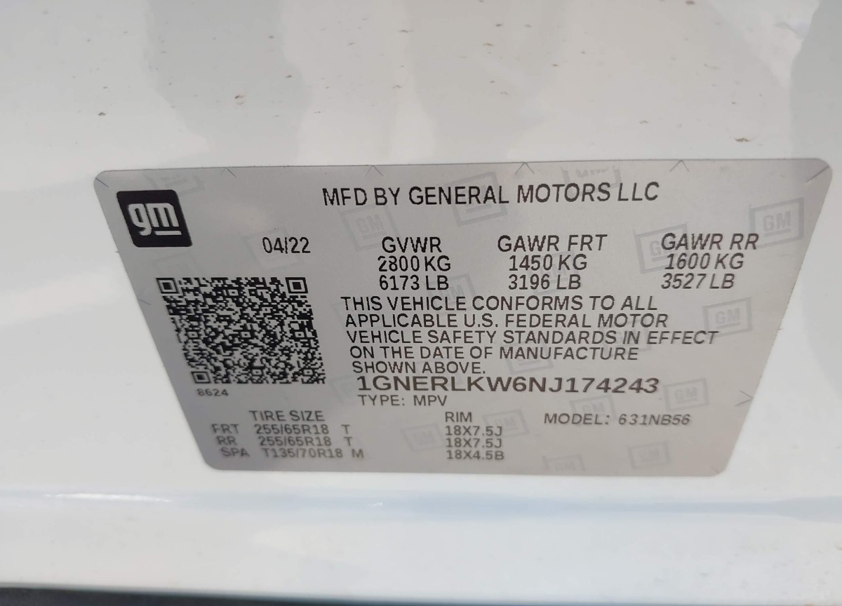 VIN:1GNERLKW6NJ174243
