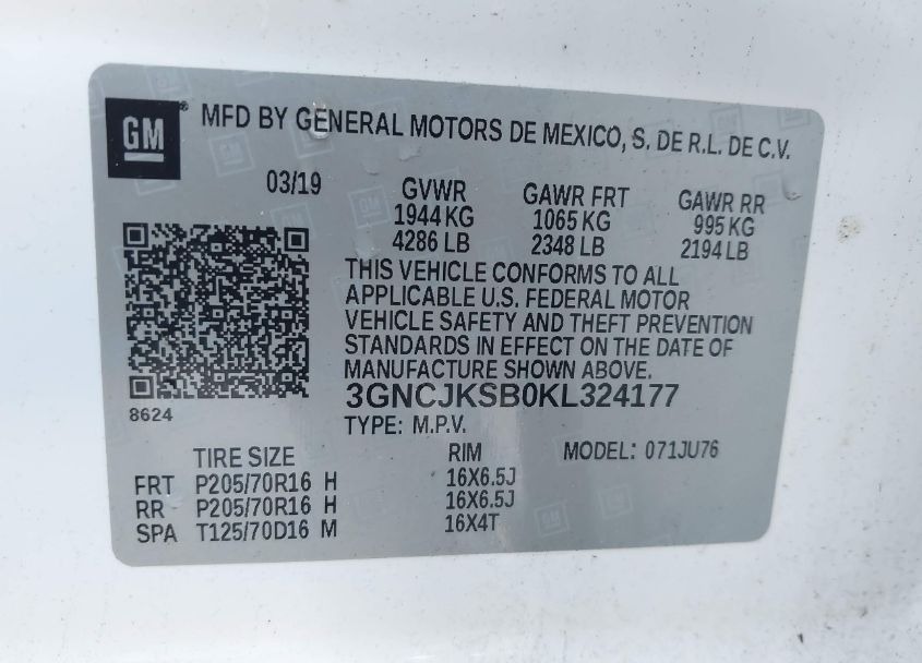 VIN:3GNCJKSB0KL324177