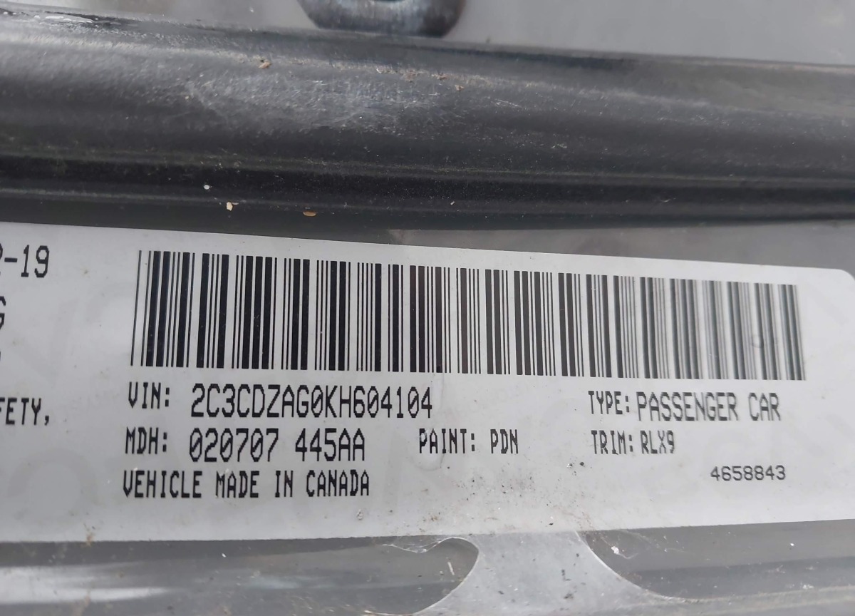 VIN:2C3CDZAG0KH604104