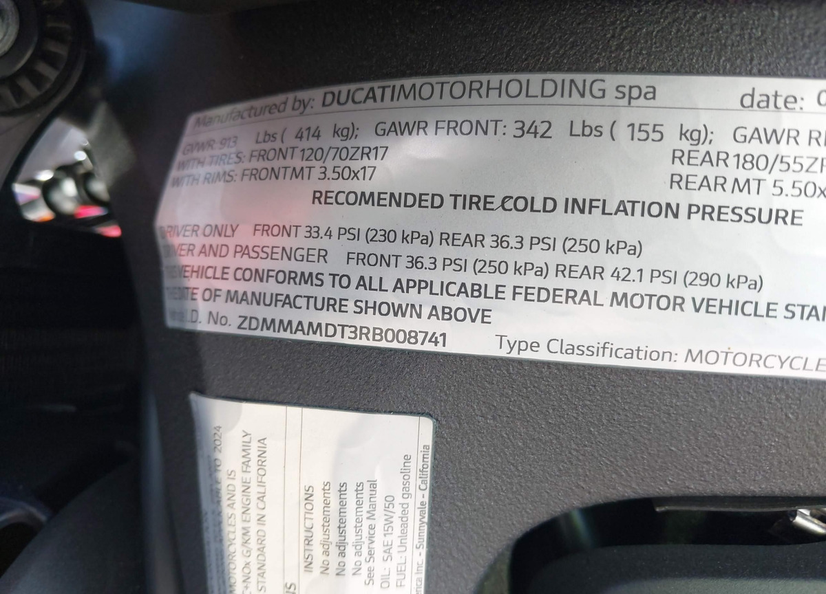 Each lot presented on our website includes comprehensive information tied to the VIN code. This allows users to cross-check vehicle data, verify the history of ownership, and confirm accident or insurance records. The Ducati MONSTER 2024 White corresponds to a car that was listed through one of the large insurance auctions in USA, which guarantees traceability and transparency of the information.