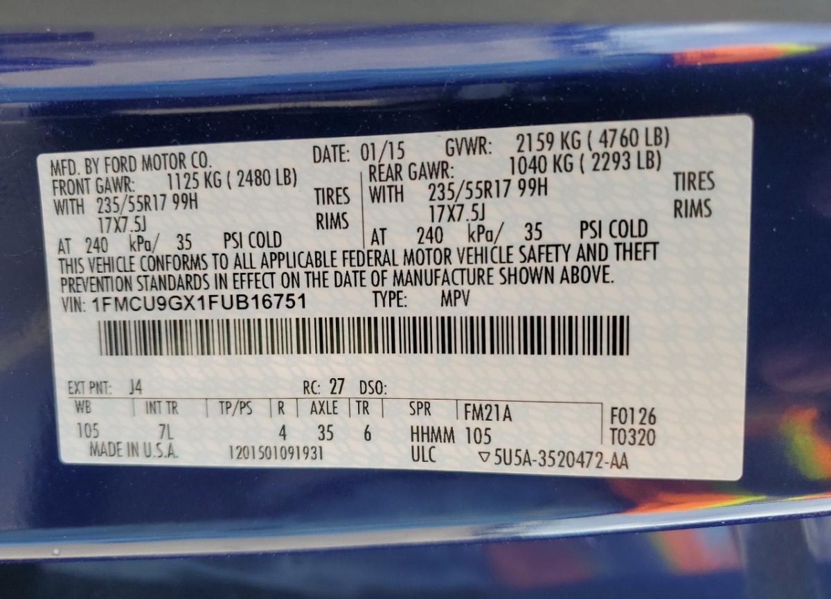 VIN:1FMCU9GX1FUB16751
