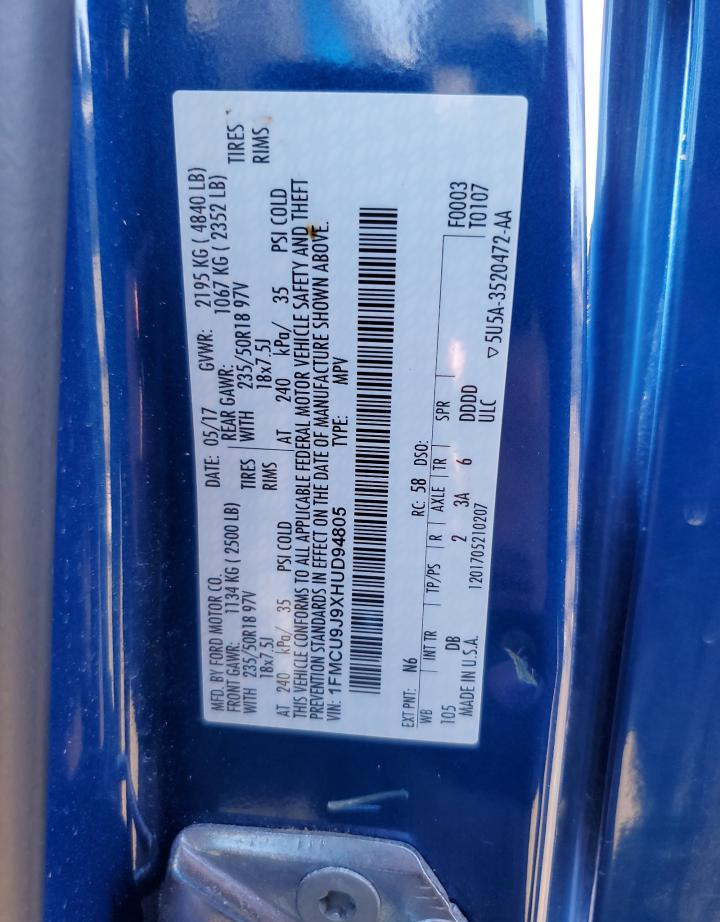 VIN:1FMCU9J9XHUD94805