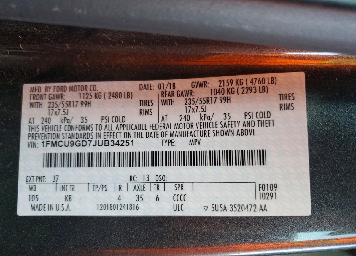 VIN:1FMCU9GD7JUB34251
