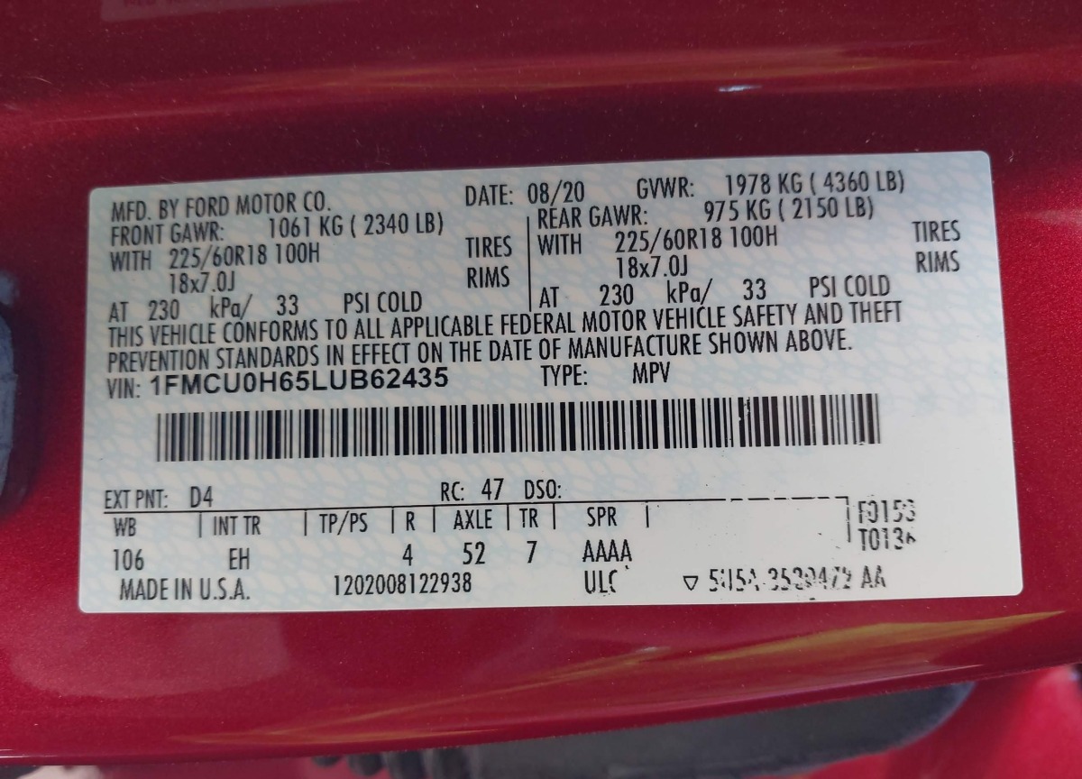 VIN:1FMCU0H65LUB62435