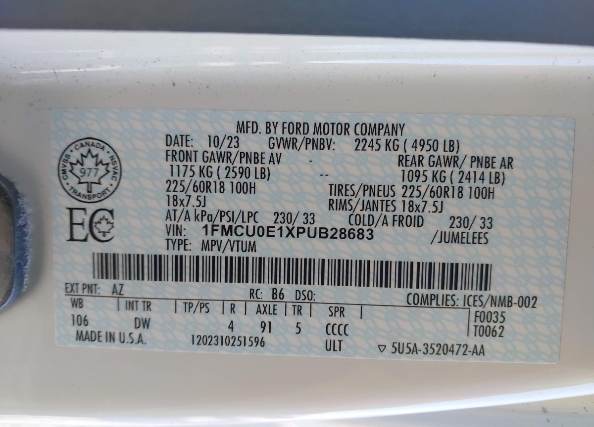 VIN:1FMCU0E1XPUB28683