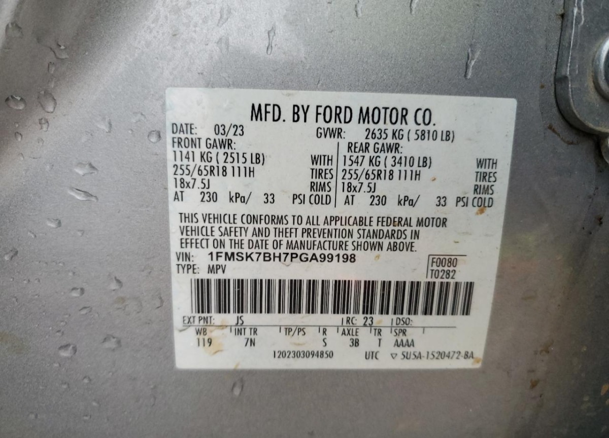 VIN:1FMSK7BH7PGA99198