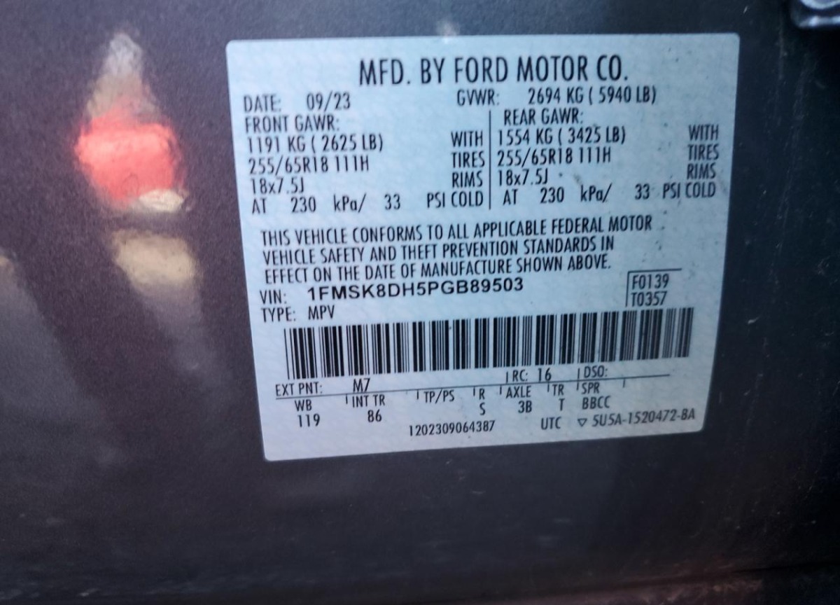 VIN:1FMSK8DH5PGB89503