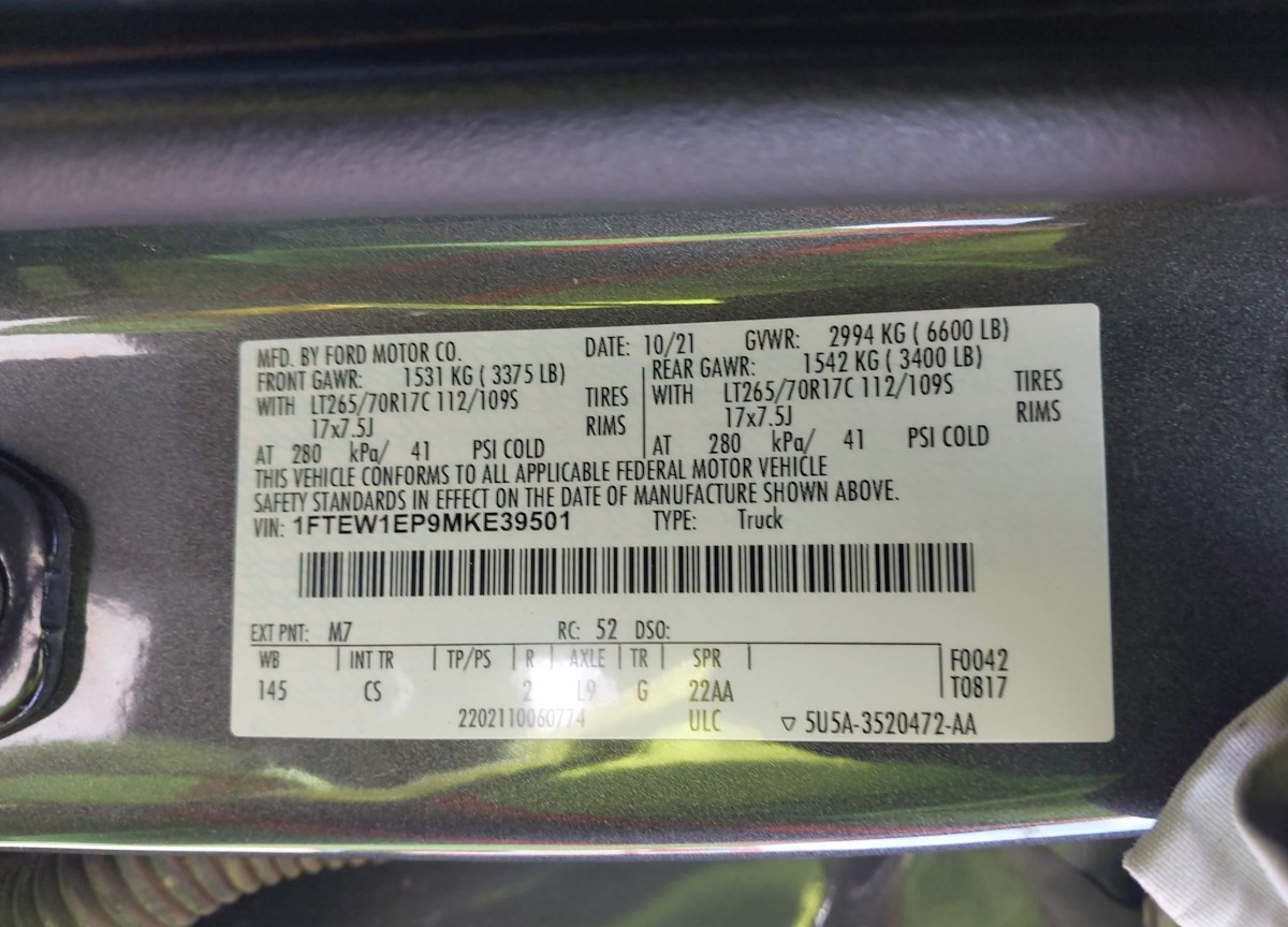 • VIN: 1FTEW1EP9MKE39501