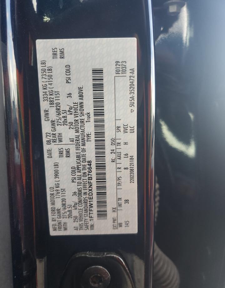 VIN:1FTFW1EDXNFB76648