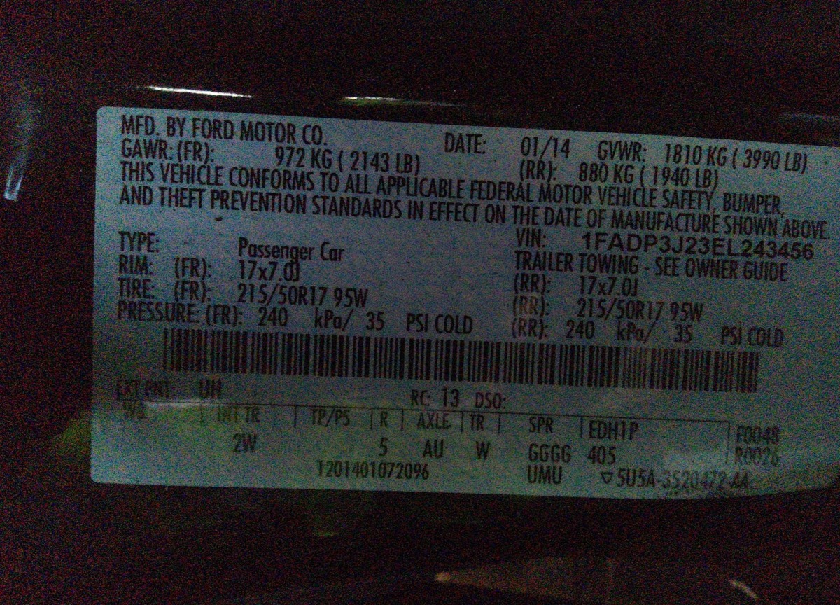 VIN:1FADP3J23EL243456