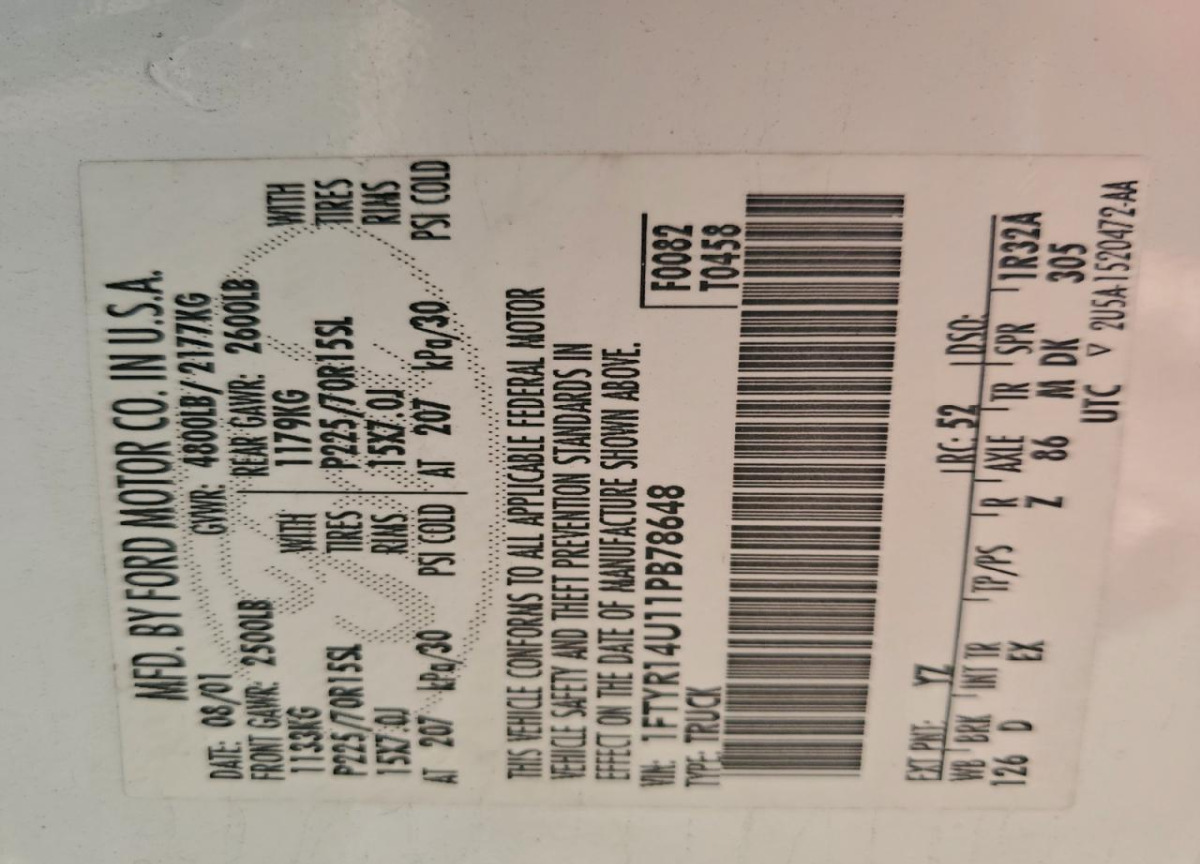 VIN:1FTYR14U11PB78648