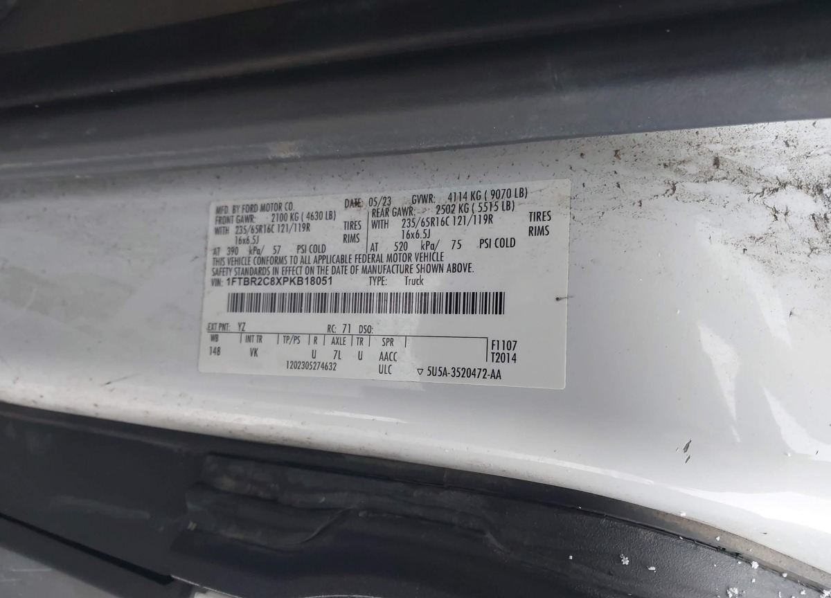 VIN:1FTBR2C8XPKB18051