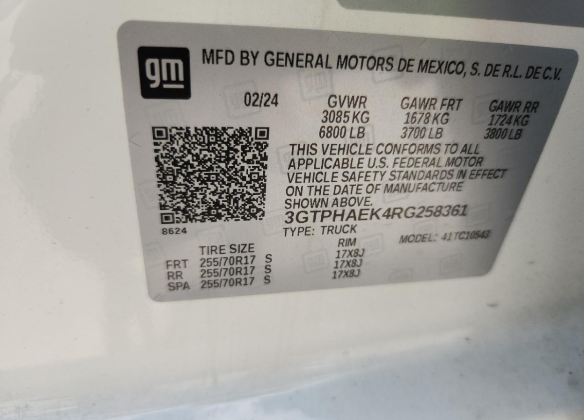 VIN:3GTPHAEK4RG258361