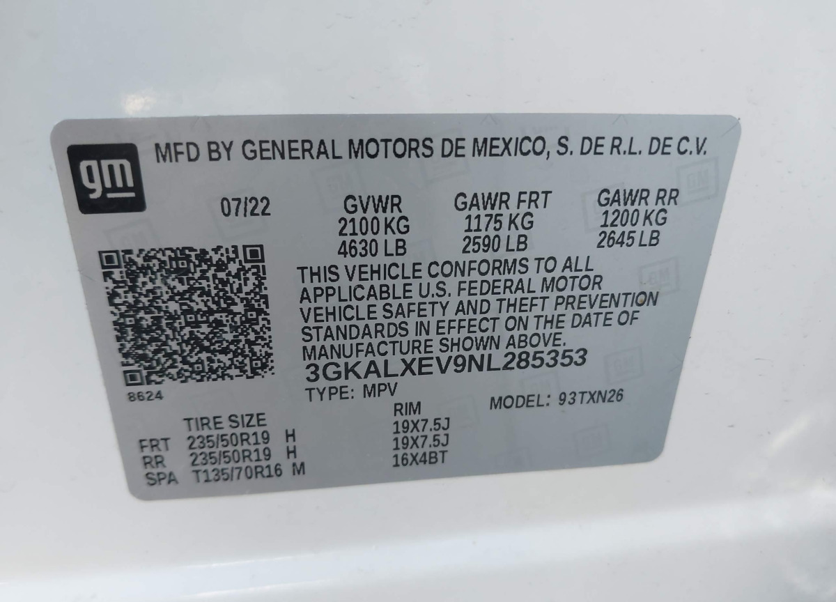 VIN:3GKALXEV9NL285353