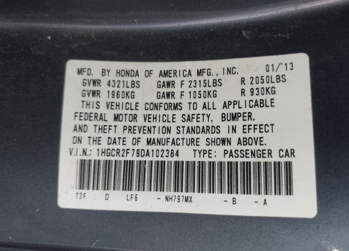 VIN:1HGCR2F79DA102384