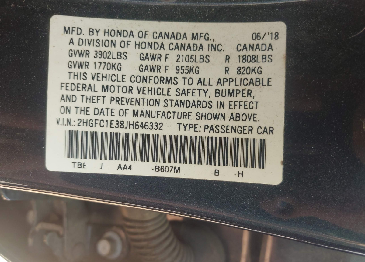 • VIN: 2HGFC1E38JH646332
