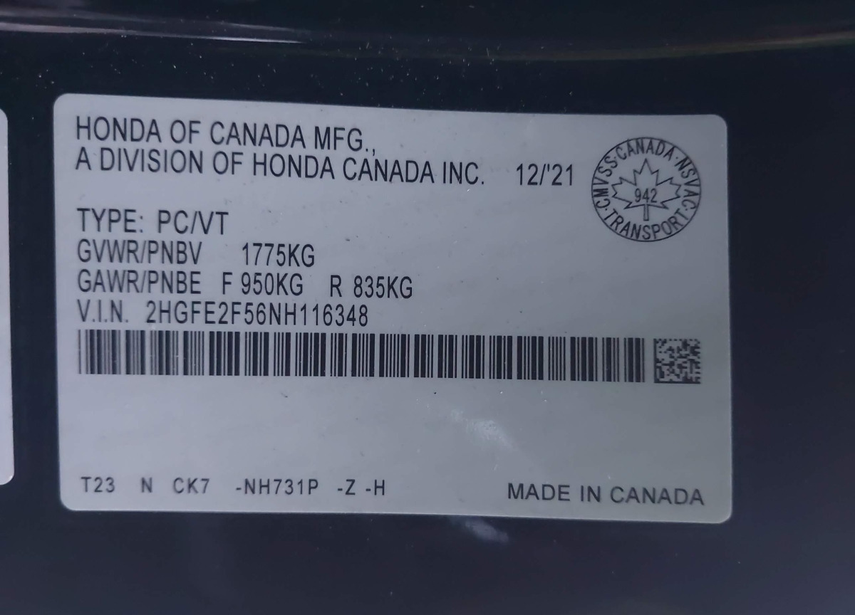 VIN:2HGFE2F56NH116348