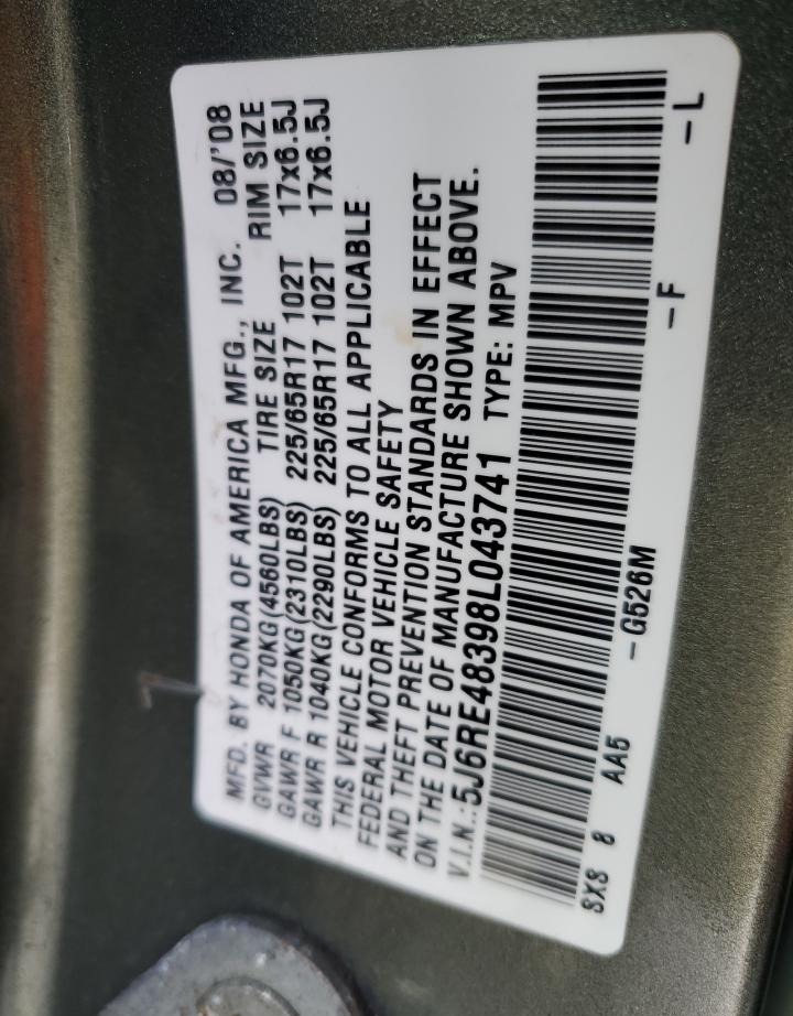 VIN:5J6RE48398L043741