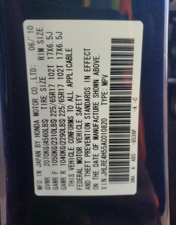 VIN:JHLRE4H55AC010820