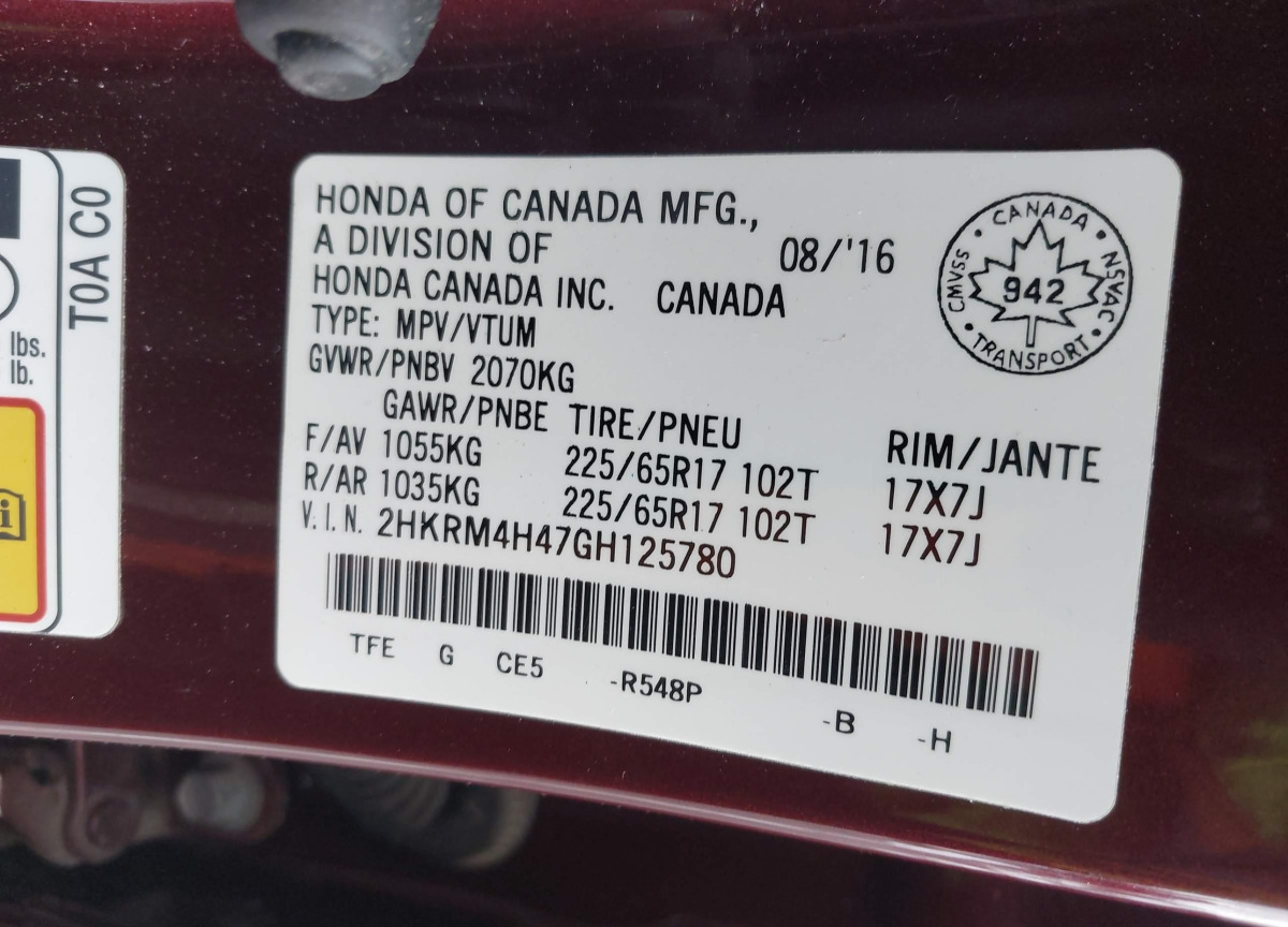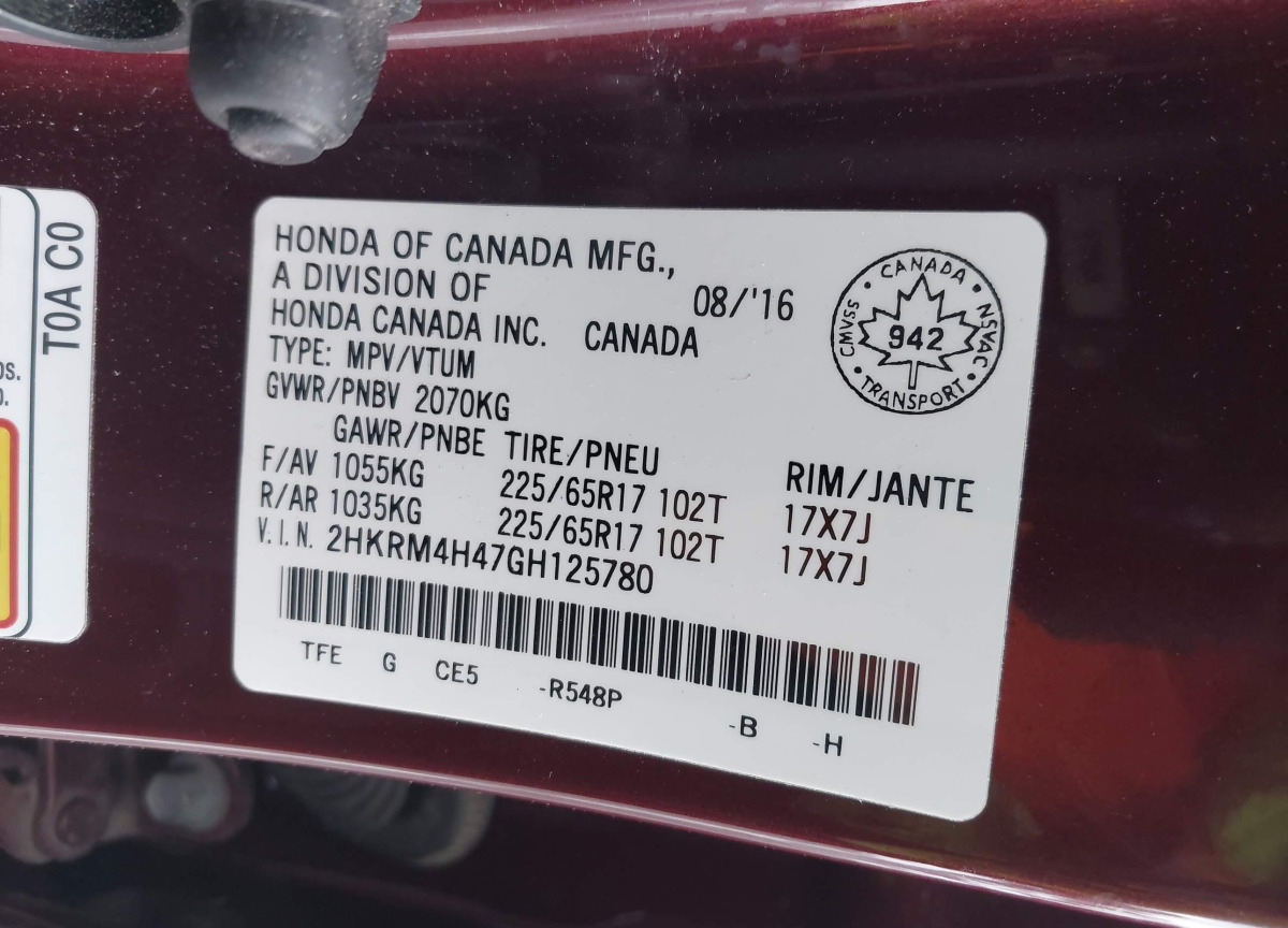 VIN:2HKRM4H47GH125780