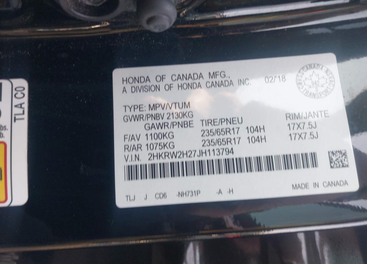 VIN:2HKRW2H27JH113794
