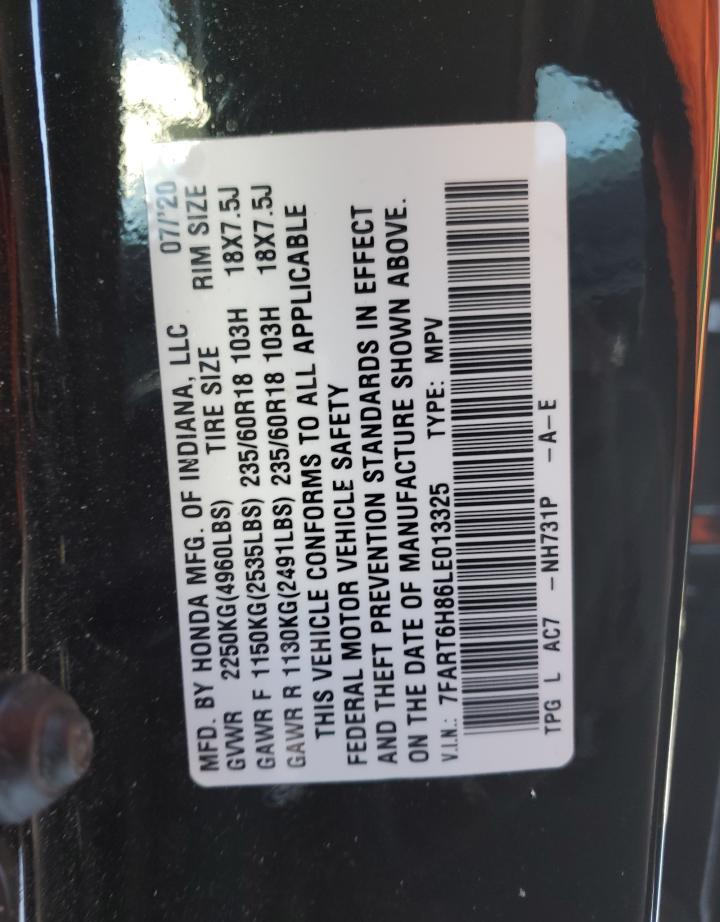 7FART6H86LE013325 Honda CR-V 2020 Black – history, photos, price