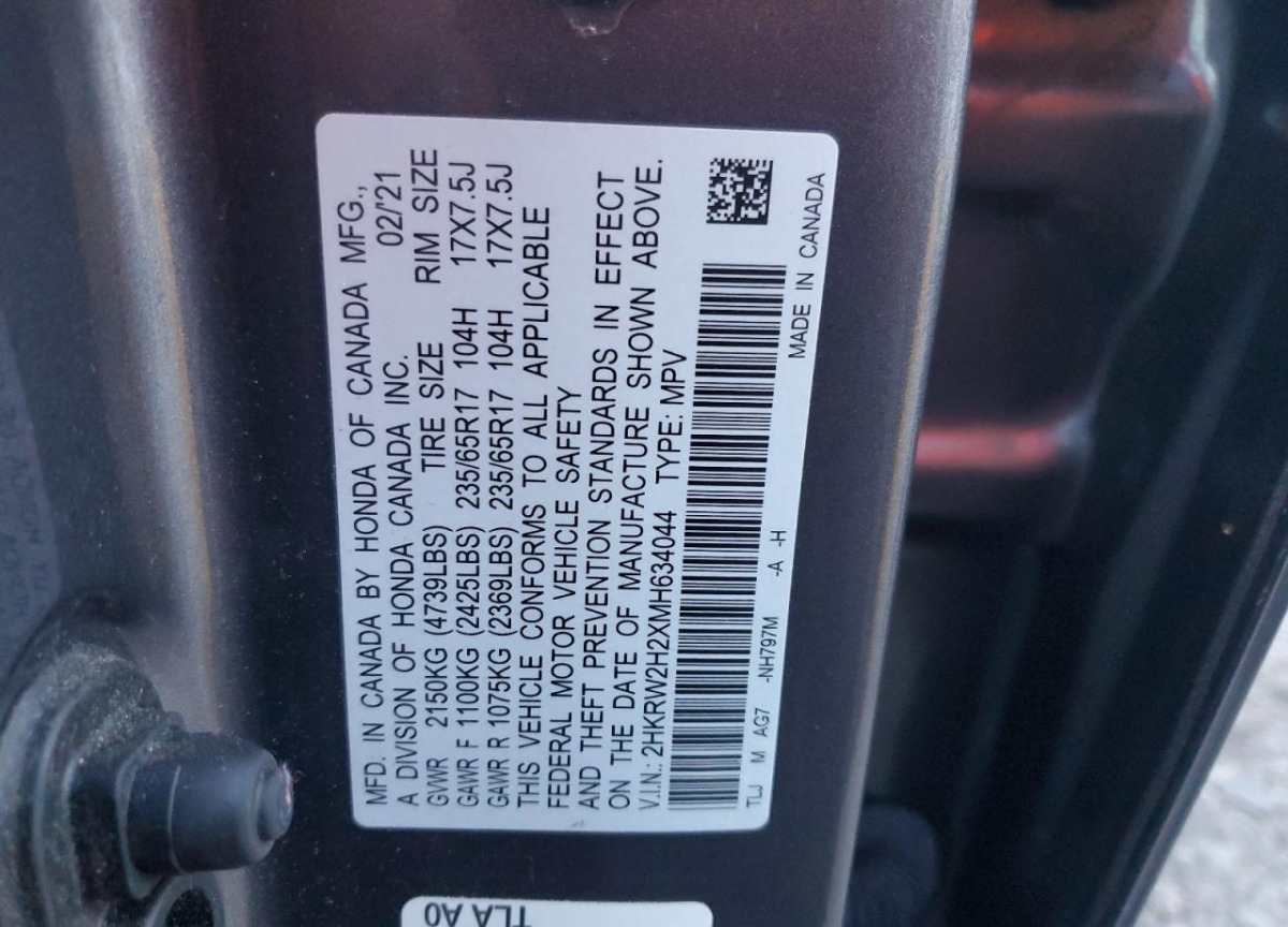 VIN:2HKRW2H2XMH634044