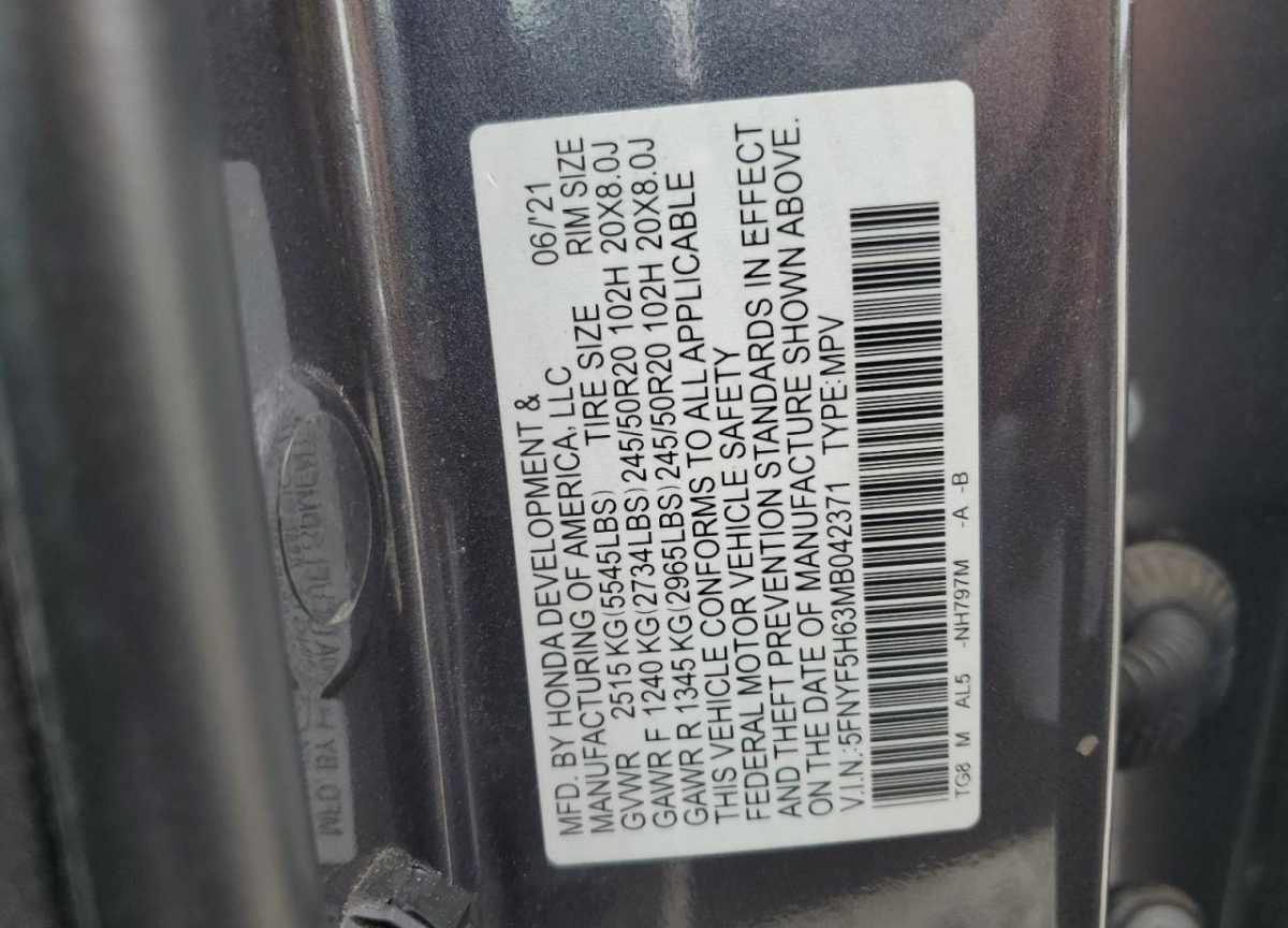 VIN:5FNYF5H63MB042371