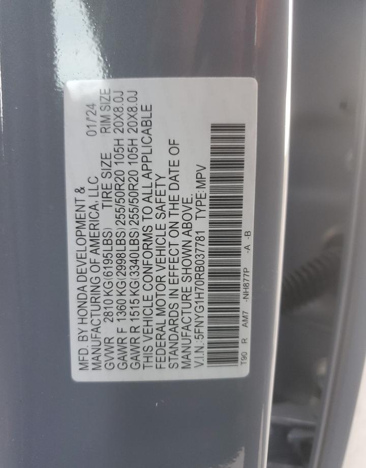 5FNYG1H70RB037781 Honda Pilot 2024 Grey – history, photos, price