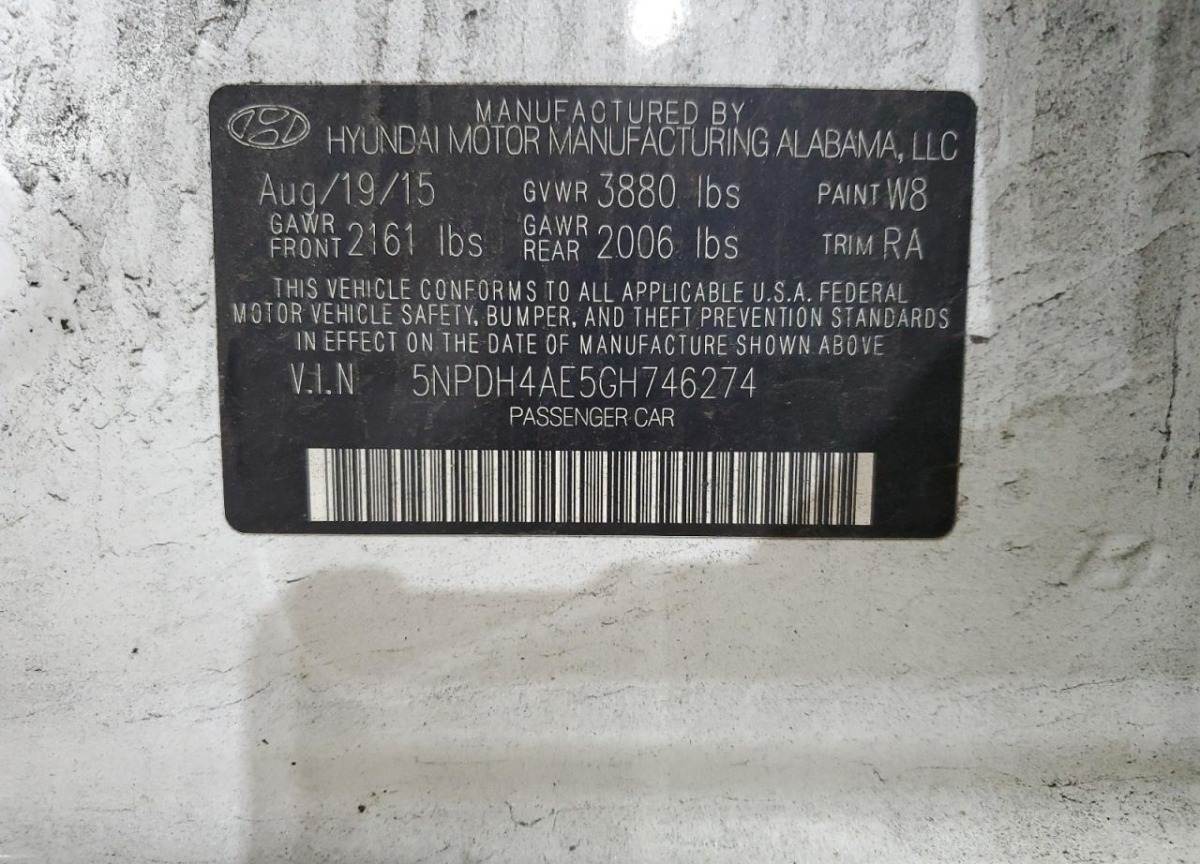 VIN:5NPDH4AE5GH746274