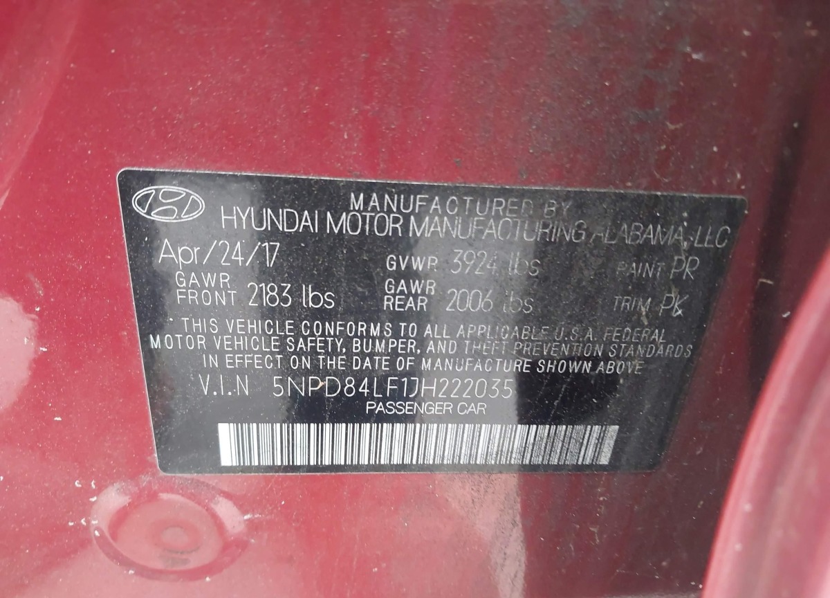 VIN:5NPD84LF1JH222035
