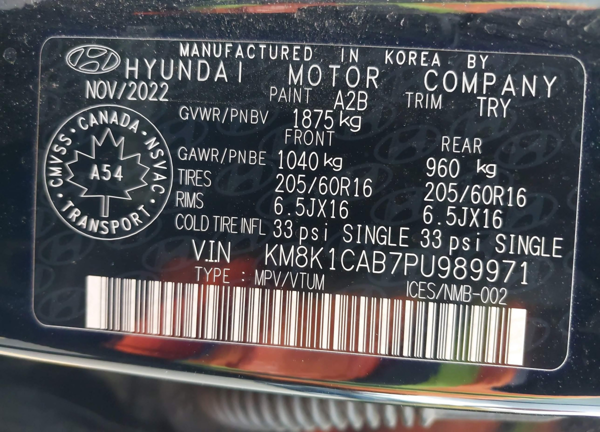 VIN:KM8K1CAB7PU989971