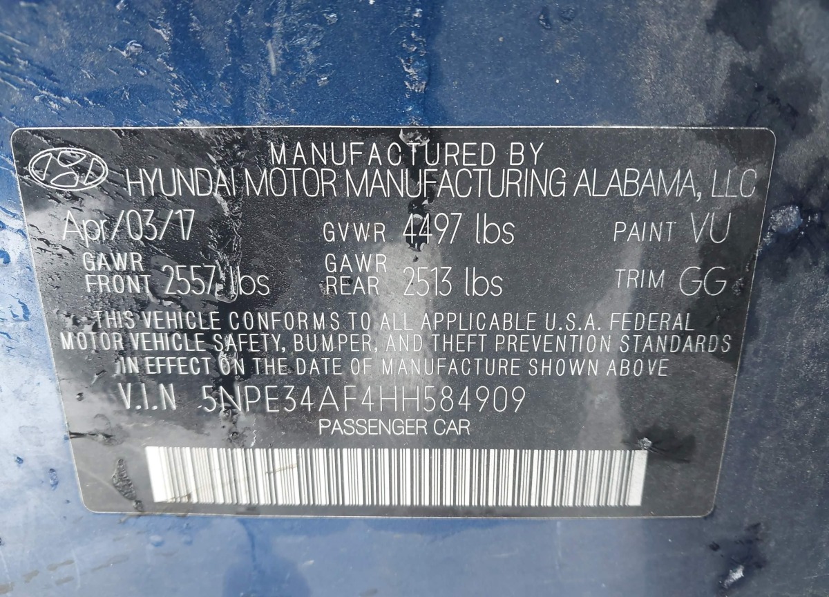 VIN:5NPE34AF4HH584909