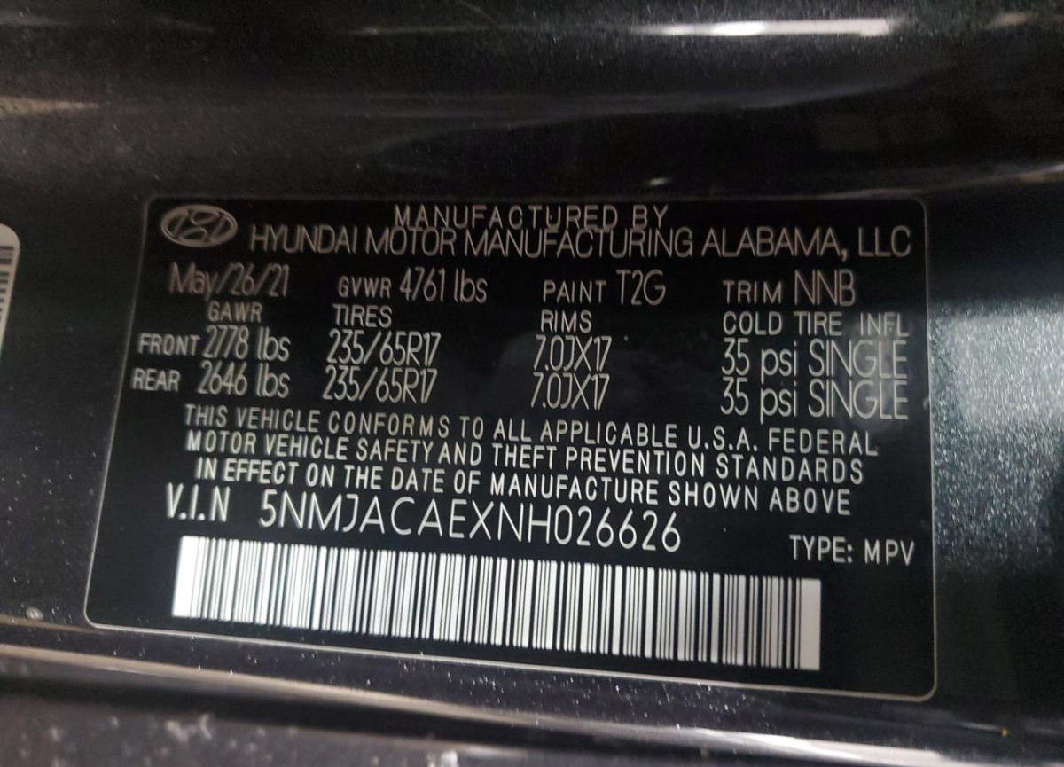 VIN:5NMJACAEXNH026626