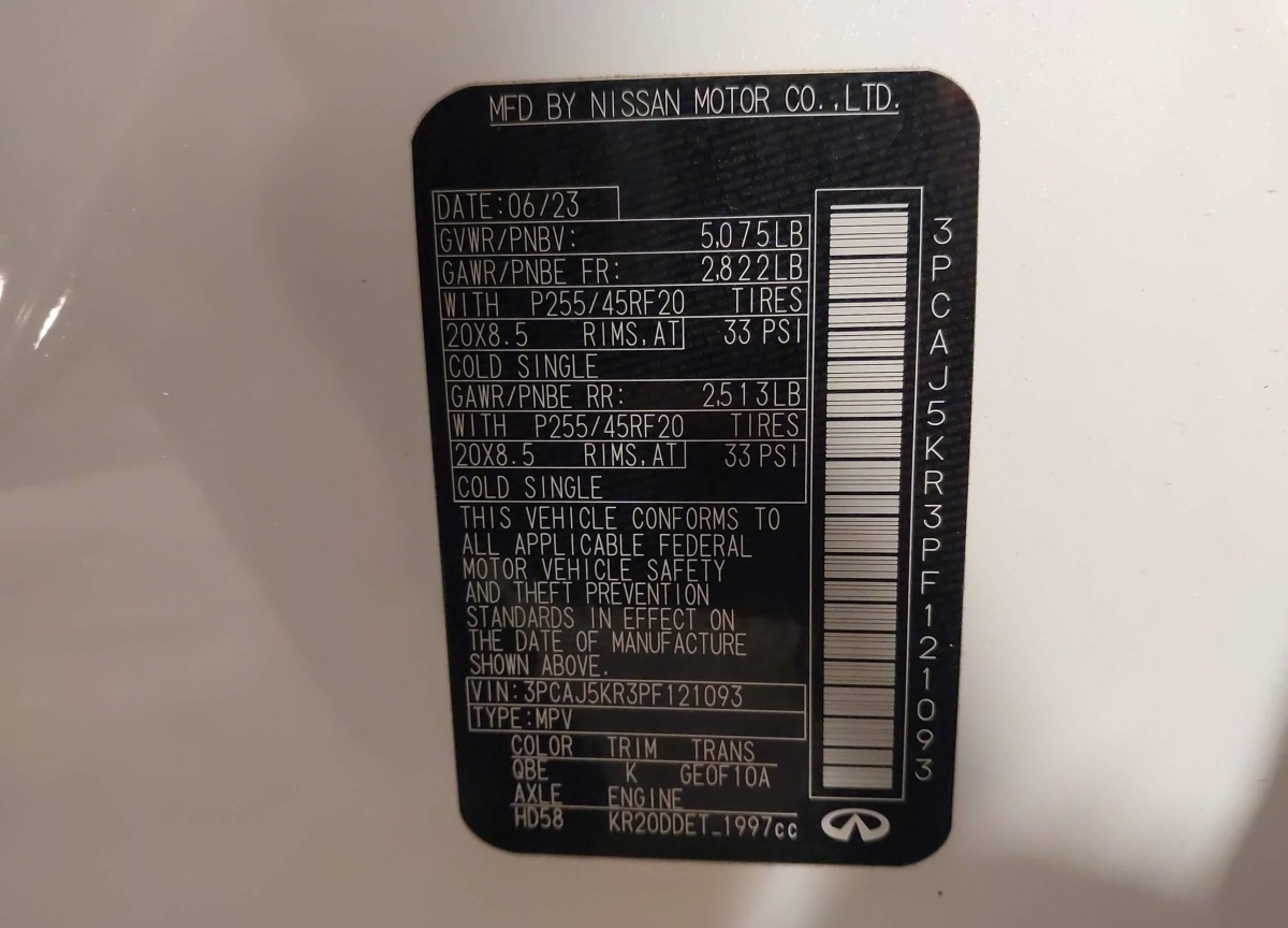3PCAJ5KR3PF121093 Infiniti QX55 2023 White – history, photos, price
