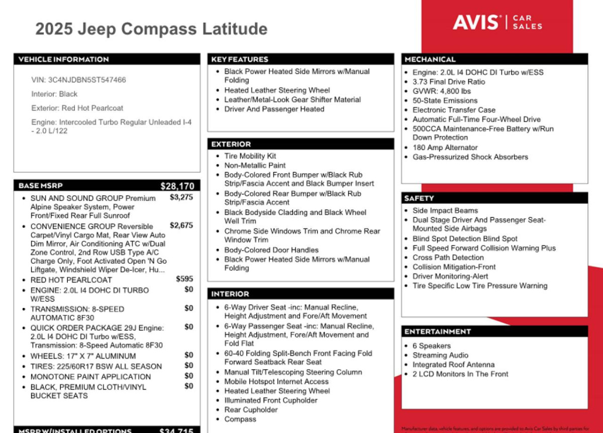 3C4NJDBN5ST547466 Jeep Compass 2025 Red – history, photos, price