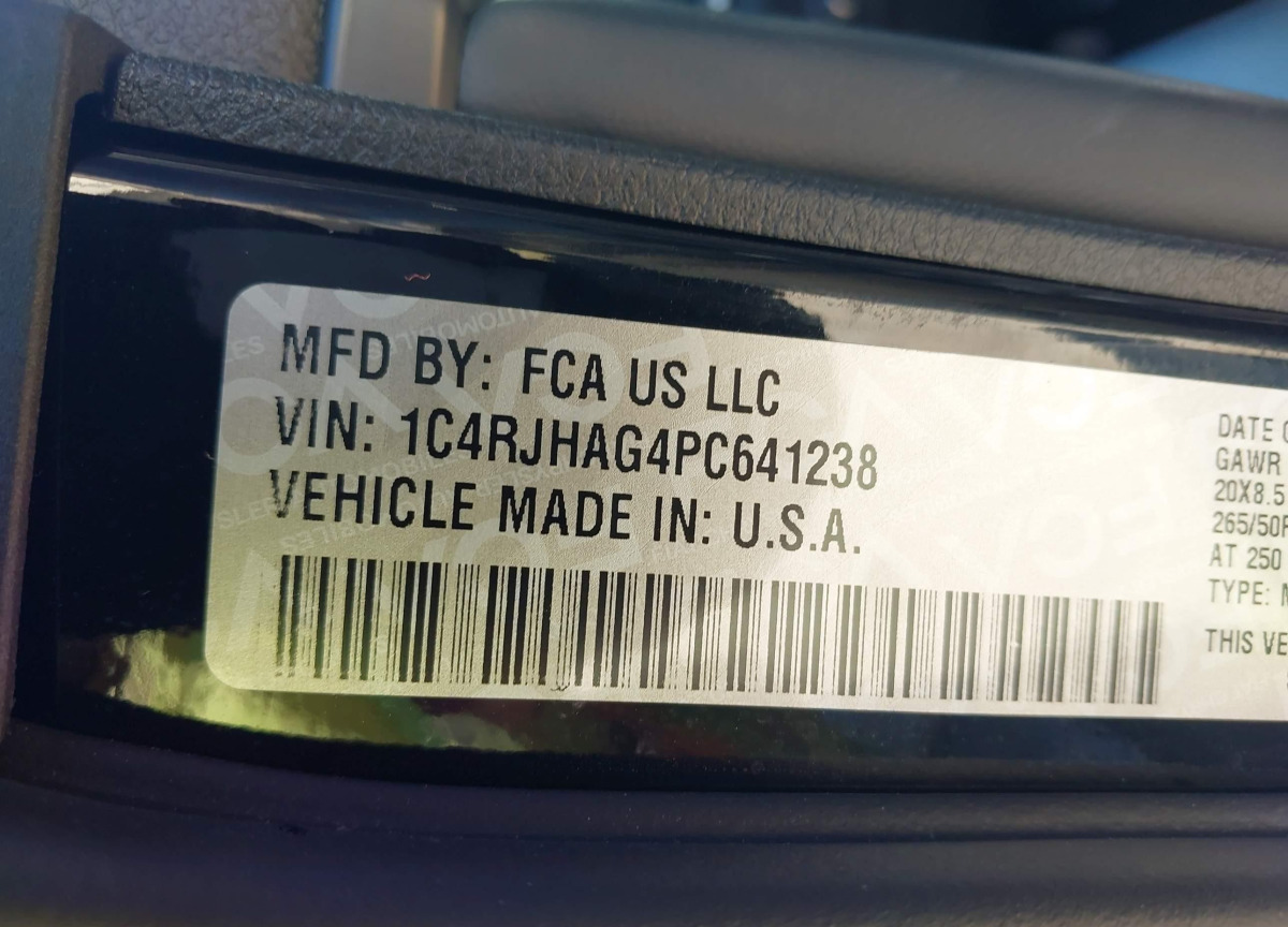 • VIN: 1C4RJHAG4PC641238