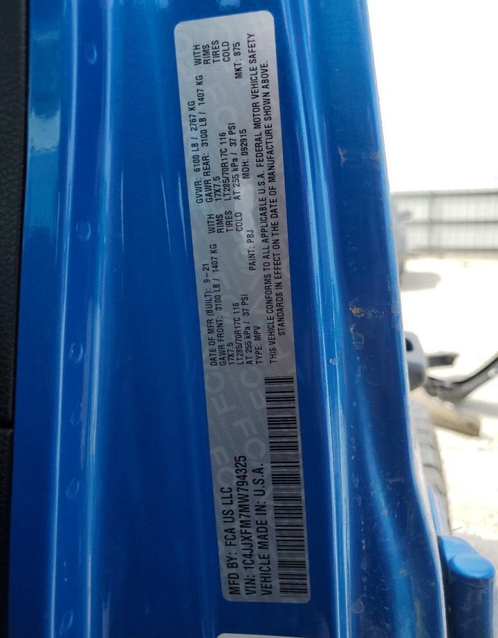 1C4JJXFM7MW794325 Jeep Wrangler 2021 Blue – history, photos, price