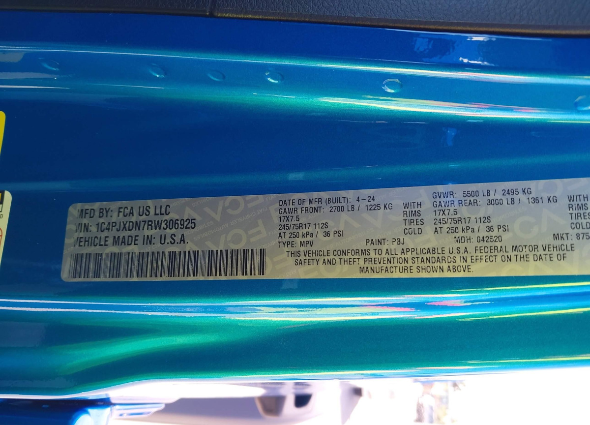 VIN:1C4PJXDN7RW306925