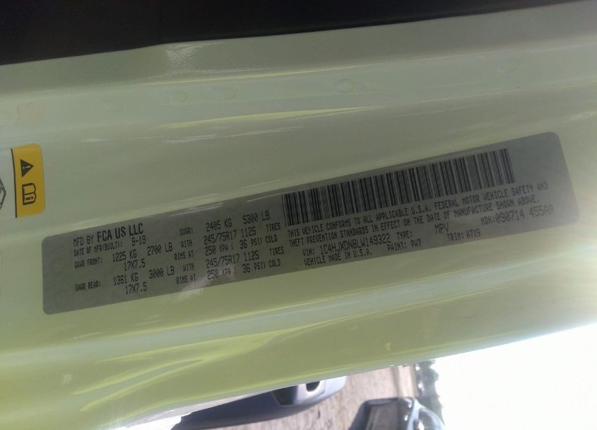 VIN:1C4HJXDN8LW149322