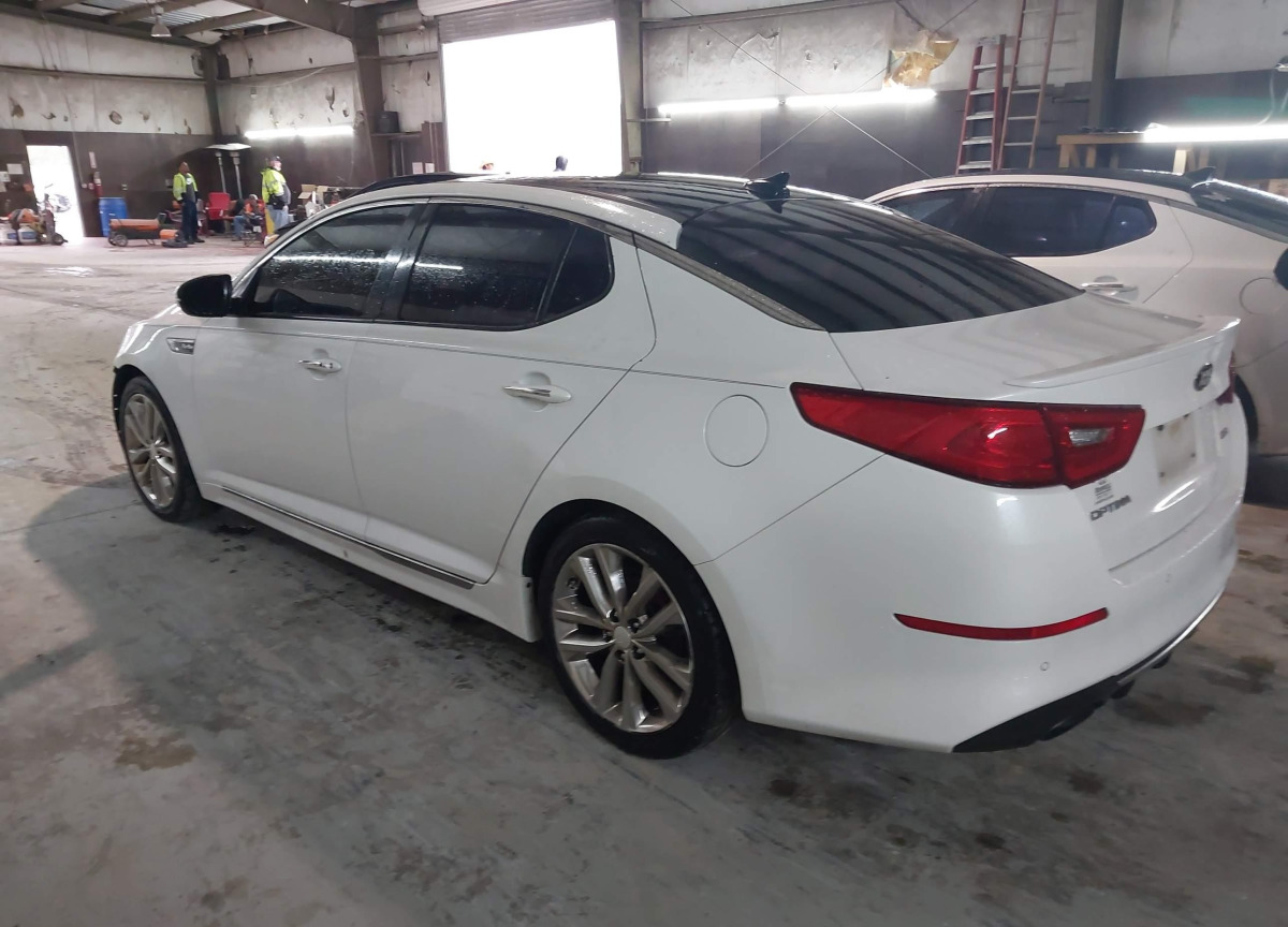 The Kia Optima 2015 White is equipped with a 2.0l i-4 di, dohc, vvt, turbo, 274hp engine. This power unit is known for its efficiency and reliability, and it is part of modern generation of engines designed to balance performance with fuel economy. According to the auction data, the vehicle was registered with only 133263 of mileage at the time of sale.