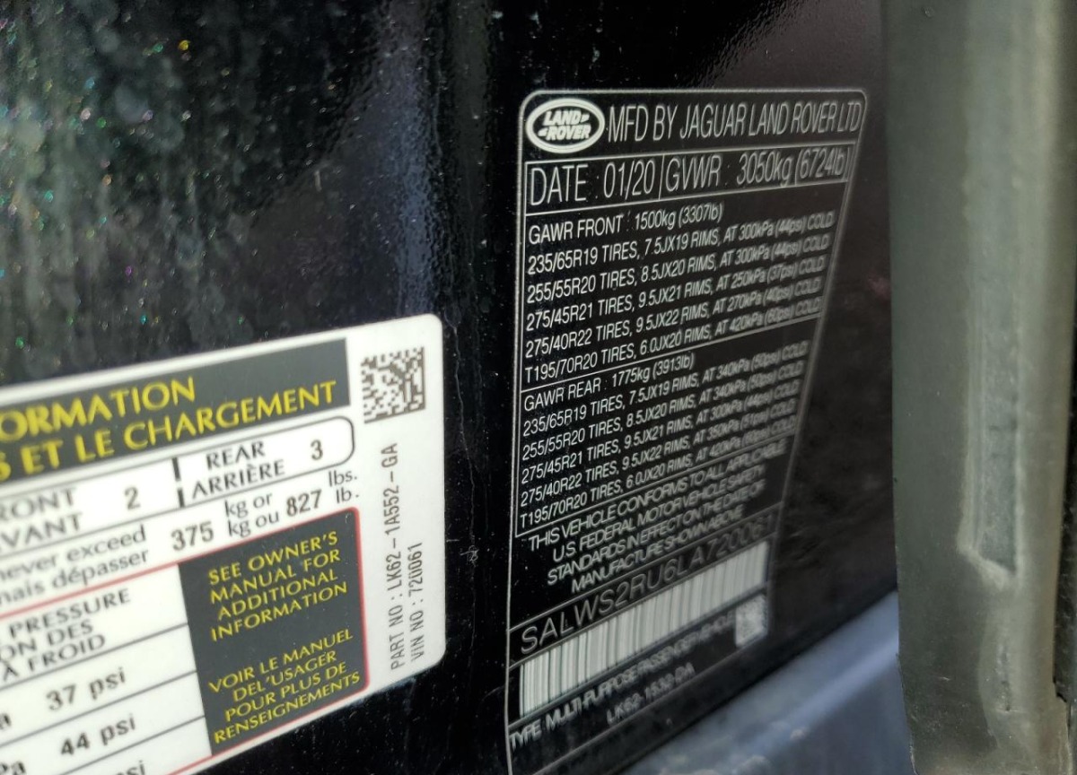 VIN:SALWS2RU6LA720061