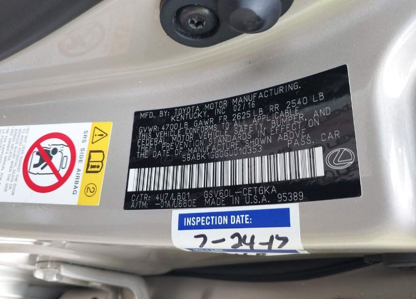 VIN:58ABK1GG0GU010353
