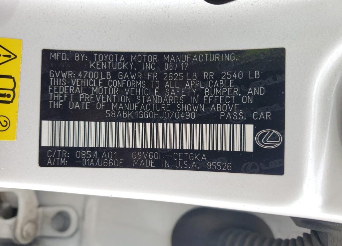 VIN:58ABK1GG0HU070490