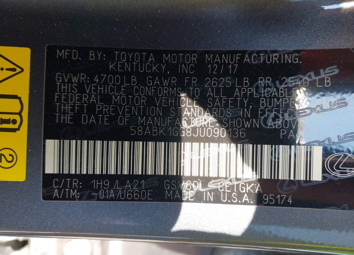 VIN:58ABK1GG8JU090136