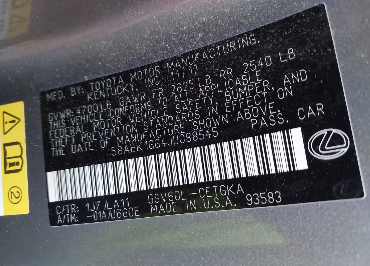 VIN:58ABK1GG4JU088545