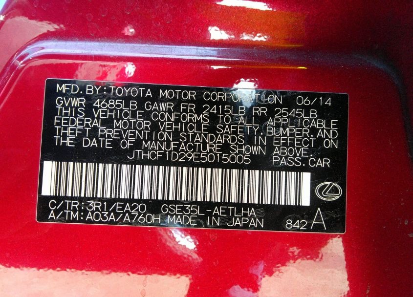 VIN:JTHCF1D29E5015005