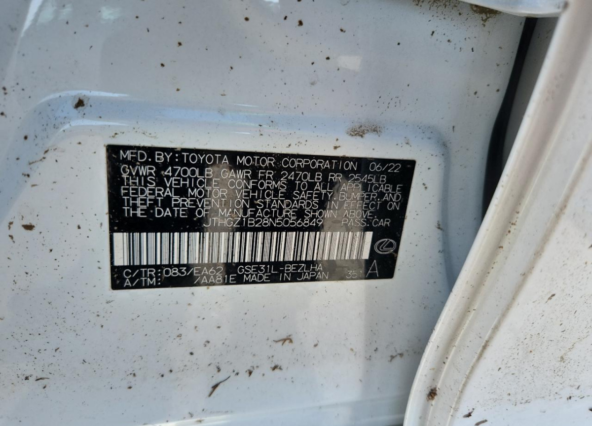 JTHGZ1B28N5056849 Lexus IS 350 2022 White – history, photos, price